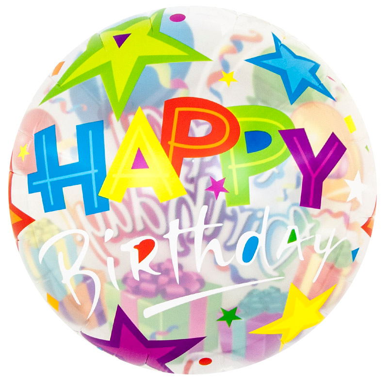 18'' / 45 см Круг, С Днем Рождения (подарки и звезды), Прозрачный