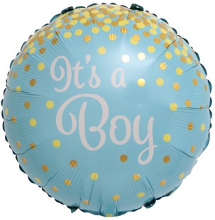 18'' / 45 см Круг, С Рождением Мальчика (золотое конфетти), Голубой