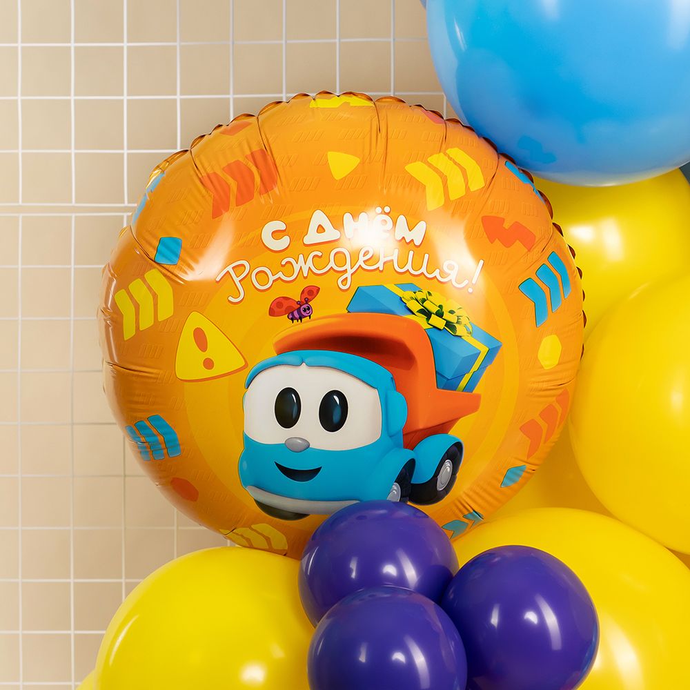 45 см, Круг, Грузовичок Лёва, С Днем Рождения!