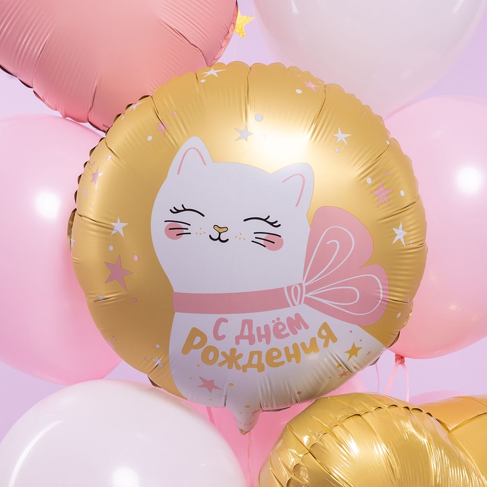 45 см, Круг, Котики, С Днем Рождения!