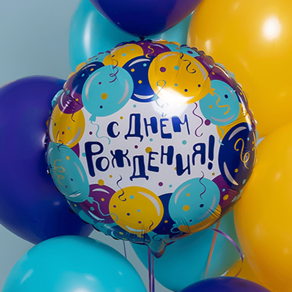 45 см, Круг, С Днем Рождения! (разноцветные шарики)