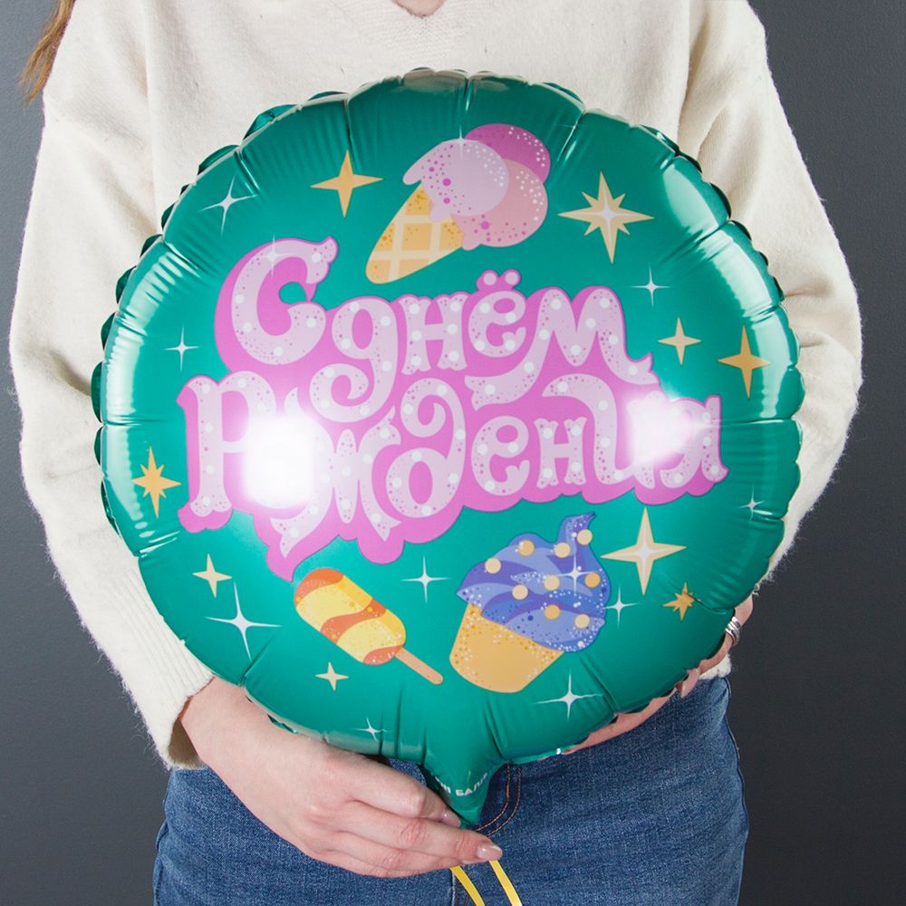 45 см, Круг, С Днем Рождения! (разноцветные шарики)