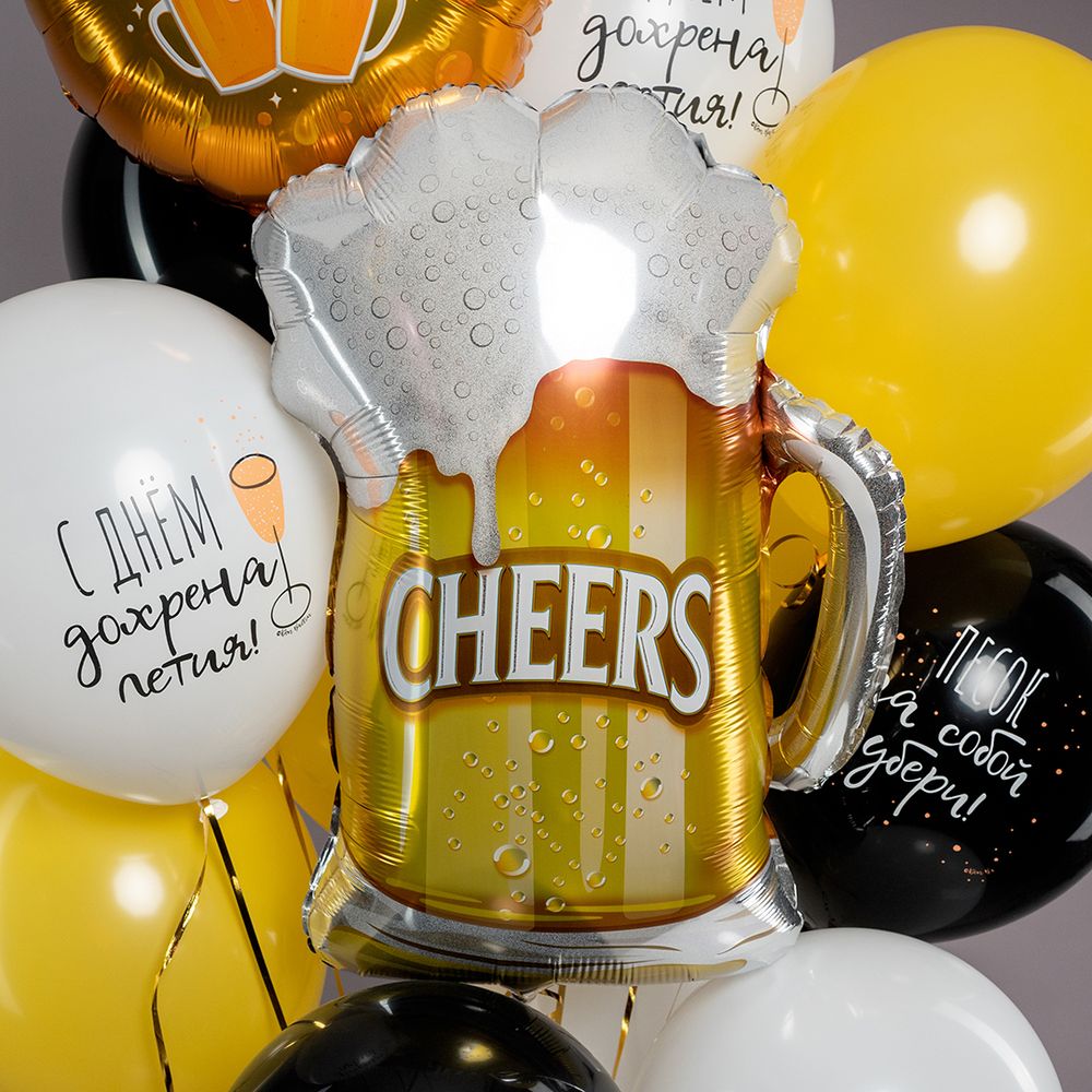 ≈ 58 см, Фигура, Мишка, Золотые сердечки, Розовый