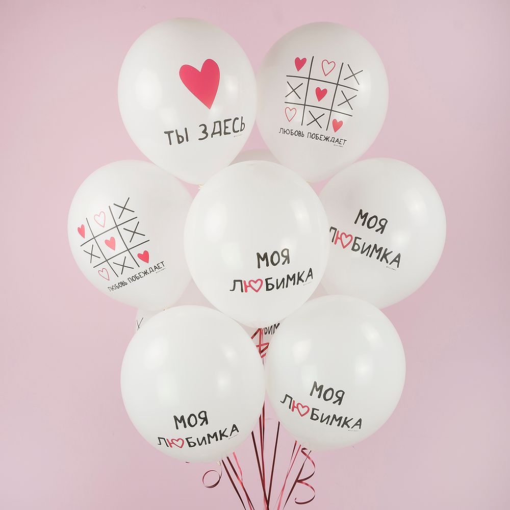 1. ≈ 12'' / 30 см, Шар с рисунком, Моя Любимка, Белый, Пастель с обработкой - 10 шт;