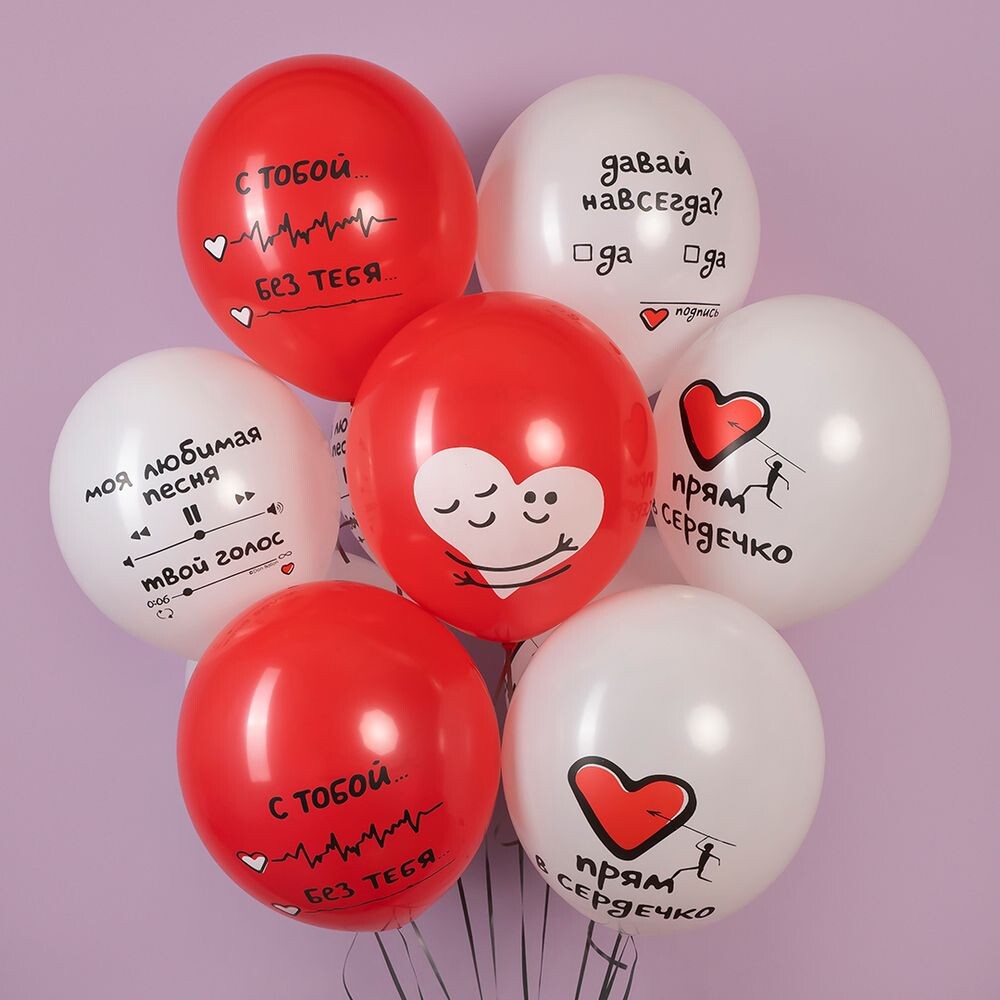 1. ≈ 12'' / 30 см, Шар с рисунком, И снова о любви, Ассорти, Пастель с обработкой - 10 шт;